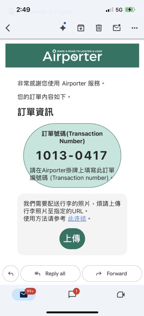 退房時 → 把行李交給飯店櫃檯,專人會前來收取